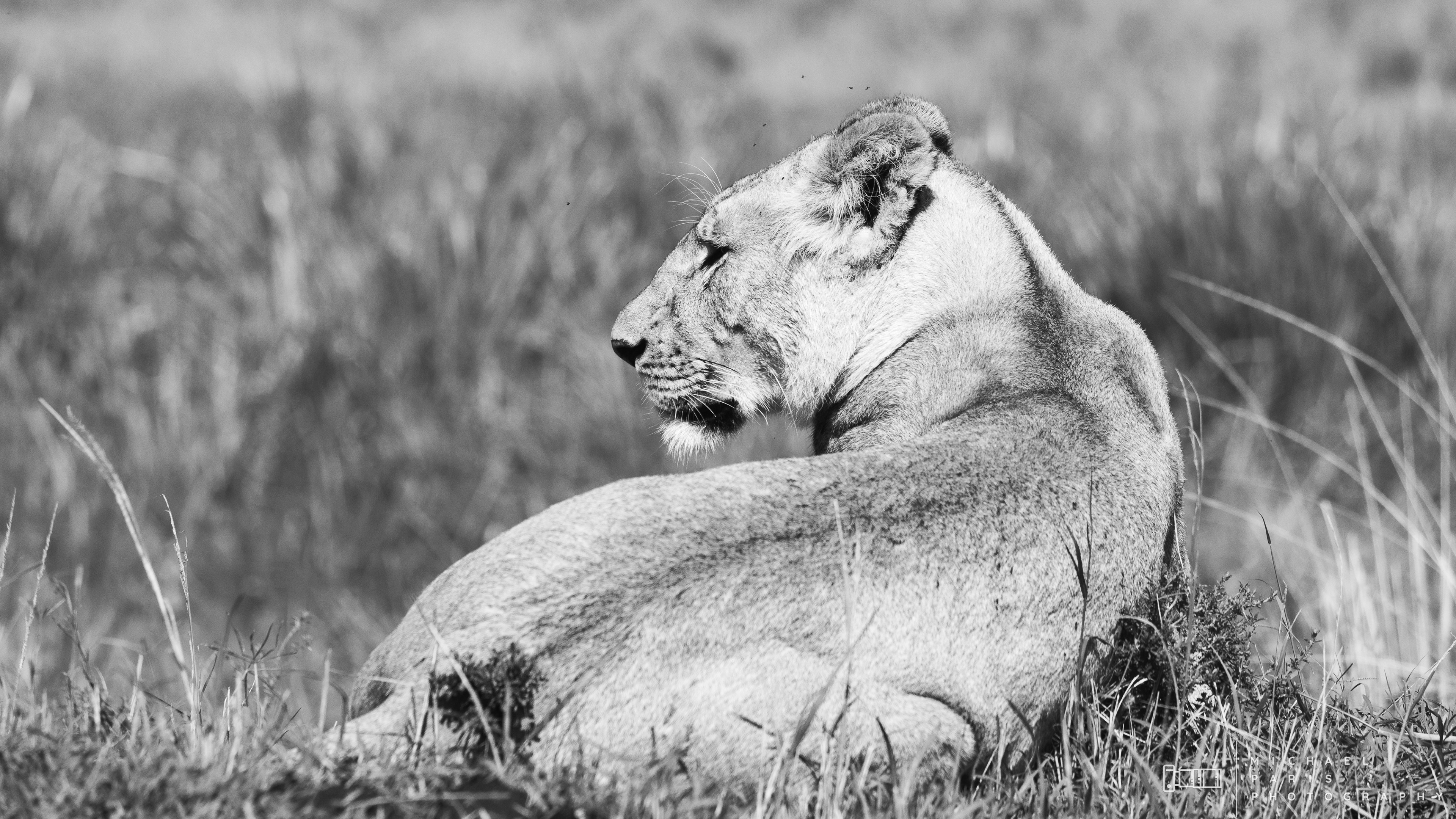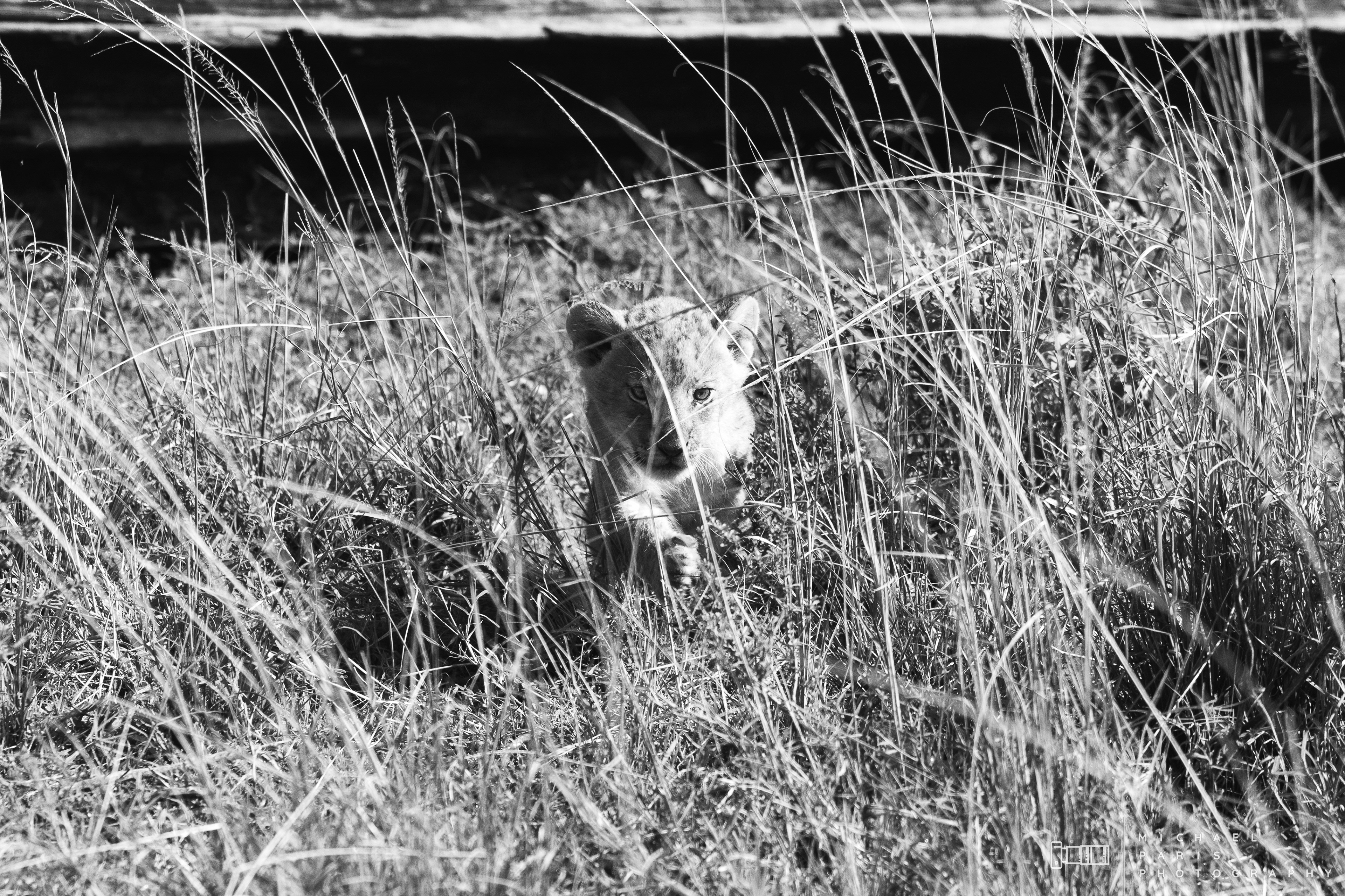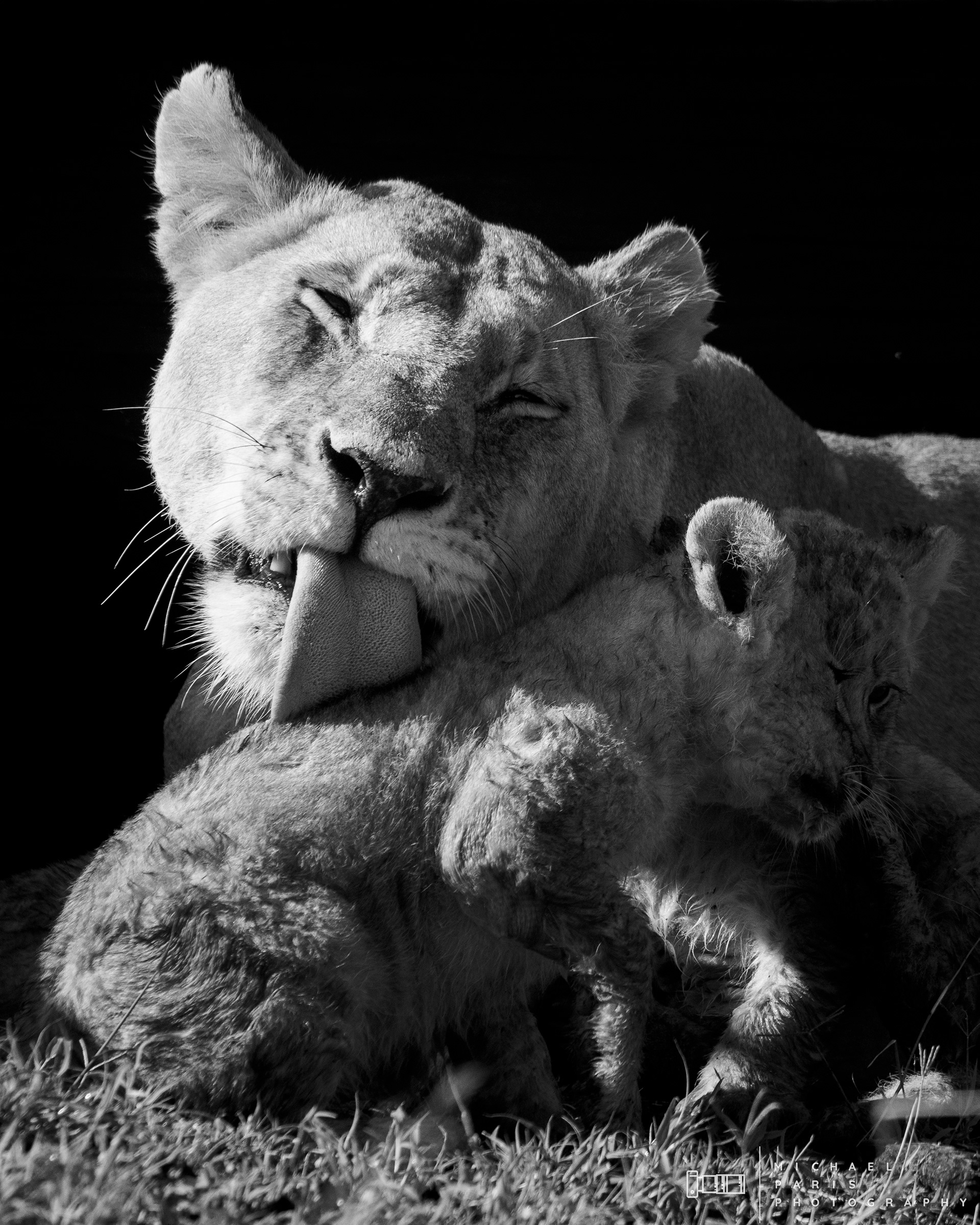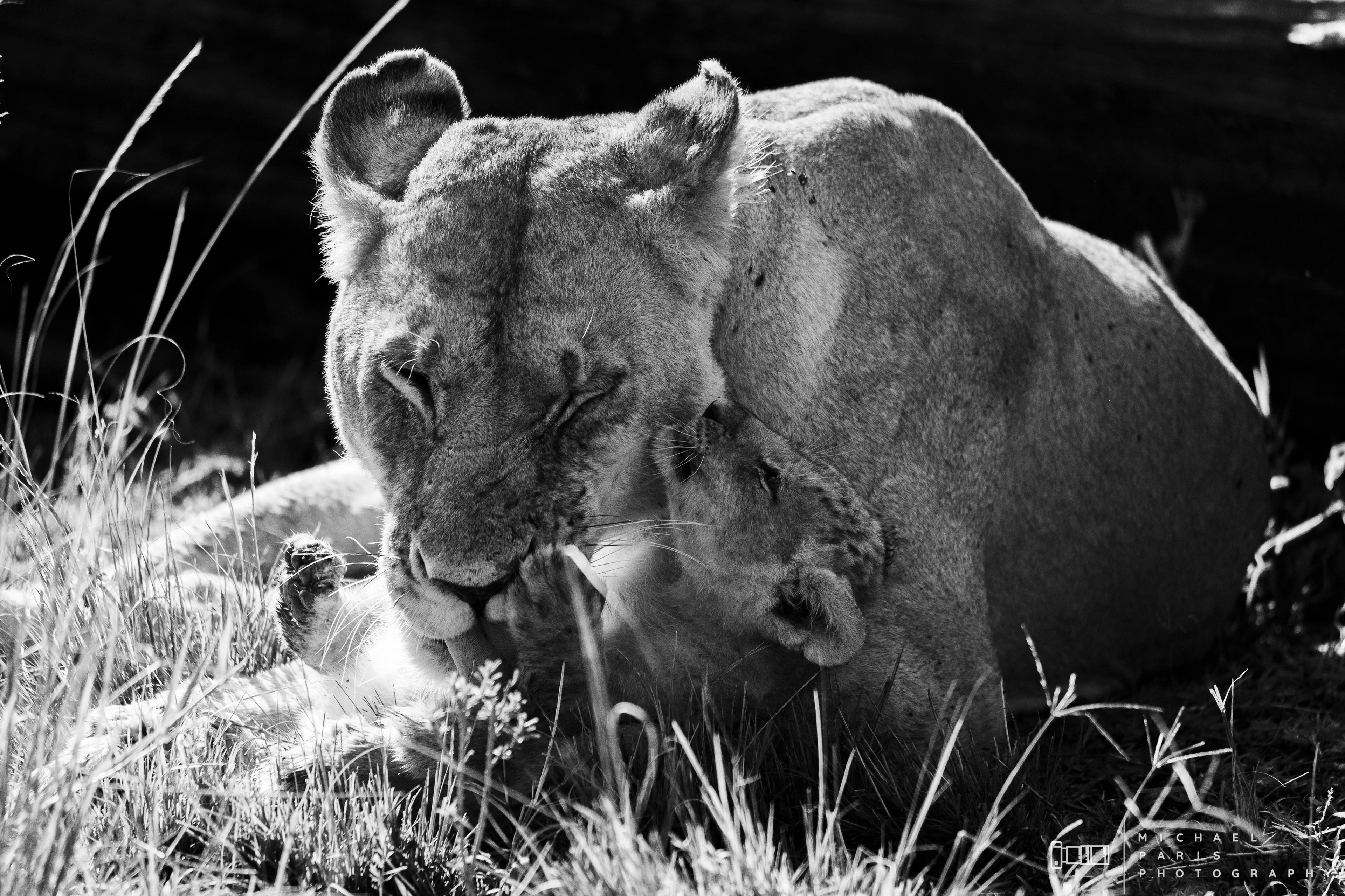 Two lionesses guide two young cubs through a marshland after an intense rainfall event. The lions take shelter from the morning sun next to a fallen tree, where the cubs are cleaned and play with their mother.